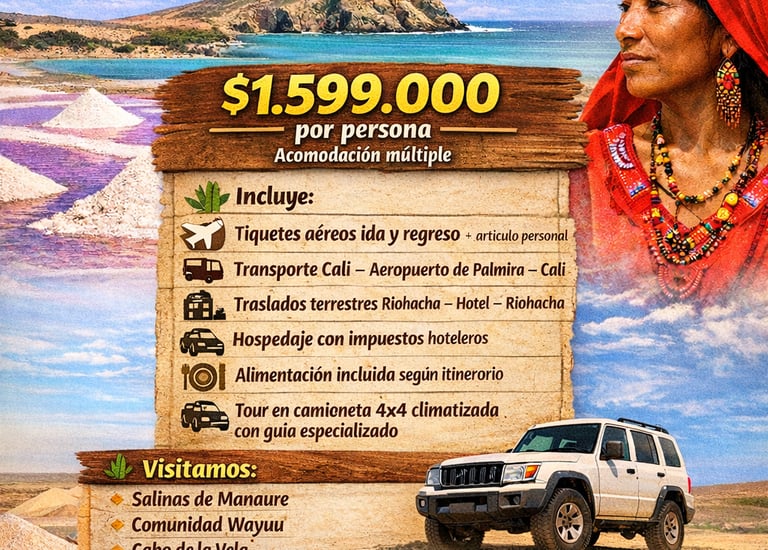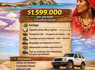 La Guajira Legendaria te invita a descubrir paisajes desérticos, cultura ancestral y atardeceres inolvidables en una excursión diseñada para viajeros que buscan aventura y tradición.