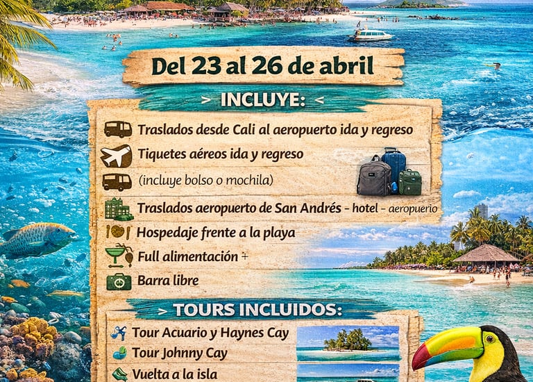 Disfruta de una experiencia inolvidable en San Andrés Isla, recorriendo el famoso Mar de los 7 Colores, con playas paradisíacas, actividades acuáticas .