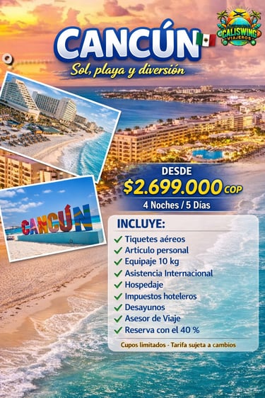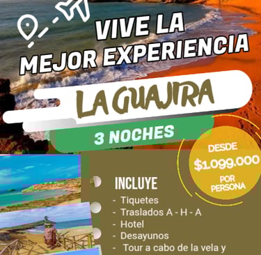 Somos una agencia de viajes que genera experiencias a nivel nacional e internacional, pasadías, excursiones, tiquetes aéreos, cruceros, hospedajes y asesorías turísticas.